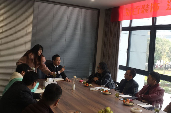 易百装饰江苏地区CEO事业研讨会在扬州易百召开,扬州易百高端设计定位在本土扎根多年,享誉社会各界增加全案装修。会议由董事长冯易进与扬州易百总经理张黎、淮安易百总经理王赞、盐城易百总经理徐清风、徐州易百总经理田舜、海门易百总经理郑勇、平邑总经理陈亮等,就2018年江苏地区共享资源一起做大,将结合企业文化进行品牌战略,会议上各位经理各抒己见将宝贵的意见汇总。