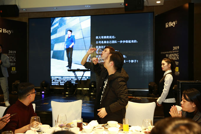 大家共同举杯开启表彰大会,满座其乐融融!